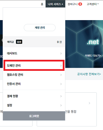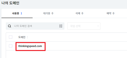 도메인 관리에 보이는 "나의 도메인" 화면 하단부의 본인 도메인을 클릭합니다.